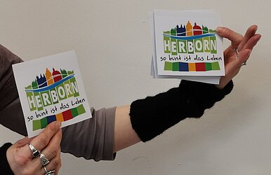 Desinfektionsmittel für die "Handwäsche zwischendurch", ideal für die Handtasche, für Reisen und Wanderungen, Fahrradtouren... mit schönen Herborn-Motiven. Je Stück € 1,50.