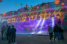 Dabei wartet auf die Besucher wieder eine Vielzahl an Fahrgeschäften. Absolutes Highlight wird der “Steamer” sein. Auf einer schräg stellenden Scheibe erheben sich die Gondeln in schwindelerregende Höhen von fast 20 Metern, schwingen frei in der Luft und sorgen für einen Adrenalinstoß, den man so schnell nicht vergisst. Natürlich dürfen auch weitere Geschäfte nicht fehlen: die Berg- & Talbahn “Musik Express” (der Jahrmarkt-Klassiker schlechthin), der “Flying Swing” (beim gemütlichen Sessel-Karussell hebt die ganze Familie ab und genießt den Festplatz aus luftiger Höhe), der “Bluefire Polyp” (Drehen, Schwingen, Wirbeln", “X-Faktor”, ein Nostalgie-Riesenrad oder Autoscooter.